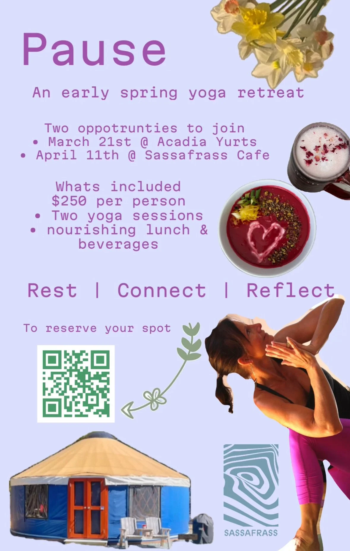 As the seasons shift, give yourself space to slow down, reconnect, and awaken from within. This intimate early spring retreat invites you to move gently, breathe deeply, and align with nature’s rhythms—emerging petal by petal, pose by pose.
